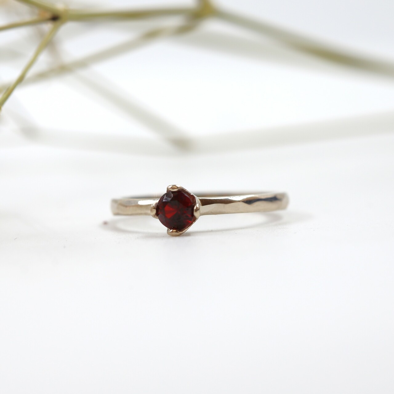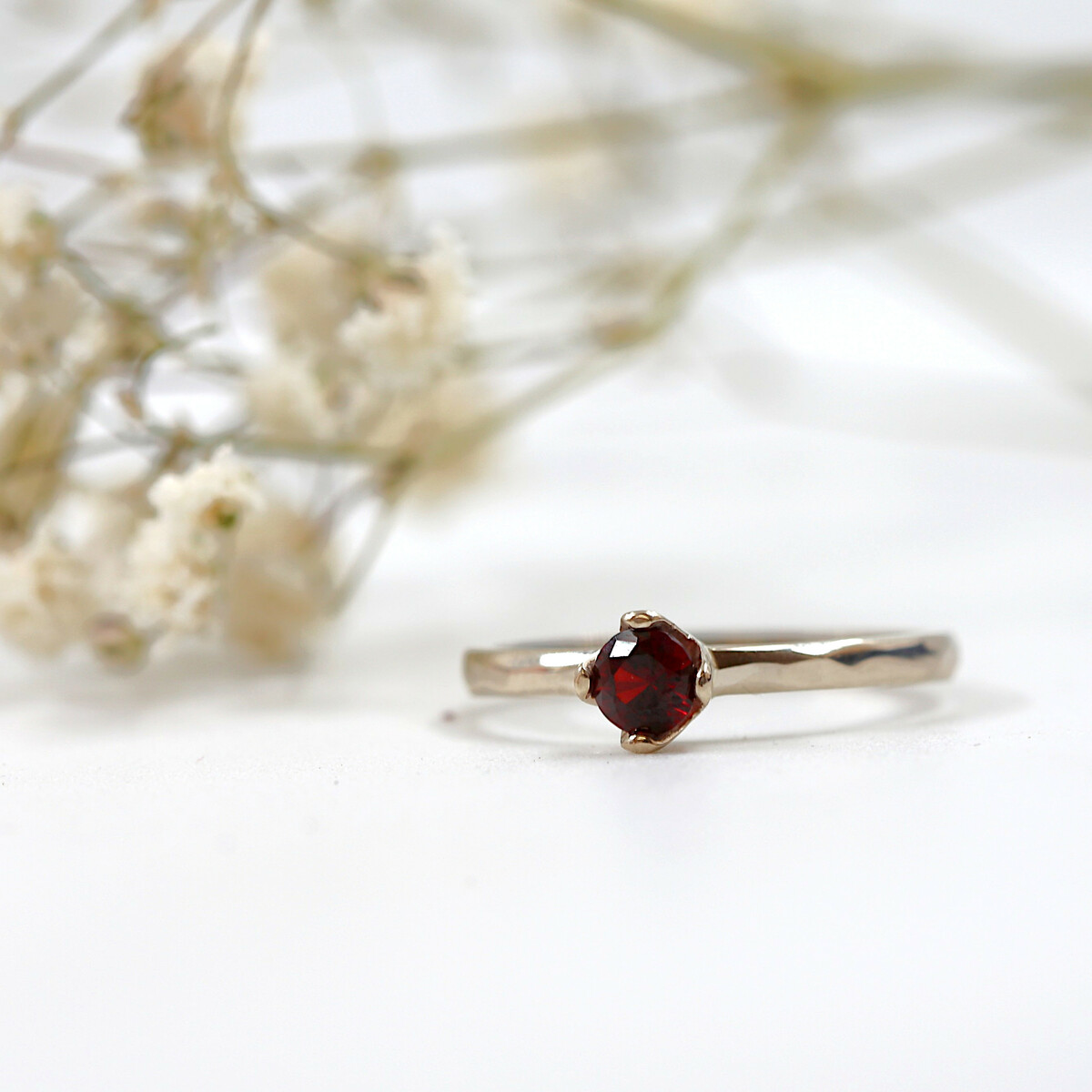 Dominantou tohoto překrásného prstenu je přírodní granát, který svým hlubokým červeným odstínem přitahuje pohledy a přináší do vašeho života energii a vášeň. Granát je nejen esteticky okouzlující, ale také známý svými ochrannými vlastnostmi a schopností přinášet sílu a pozitivní energii.