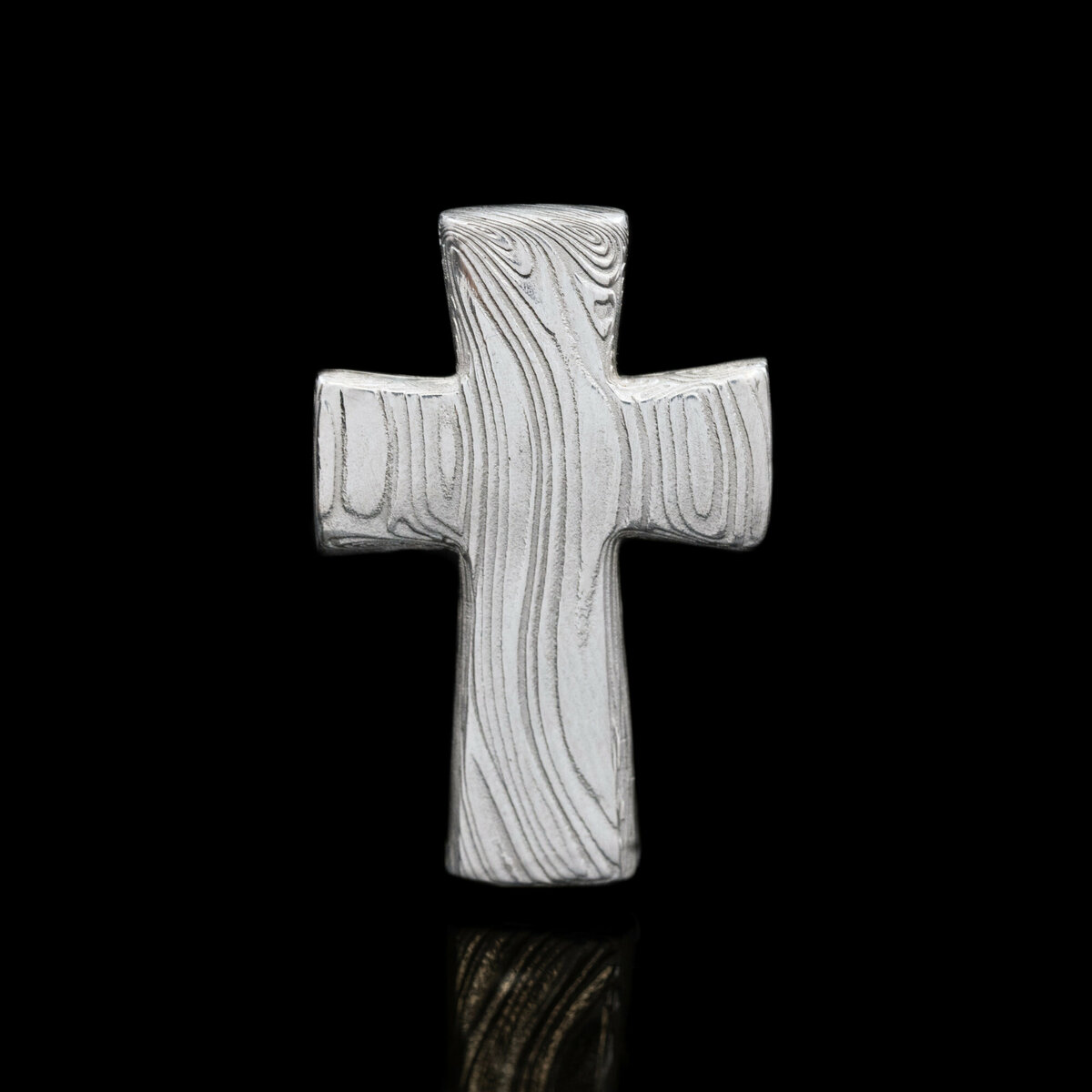 Křížek - vzor dřevo, světlý - přívěsek z damaškové oceli, CR6471Křížek - vzor dřevo, světlý - přívěsek z damaškové oceli, CR6471