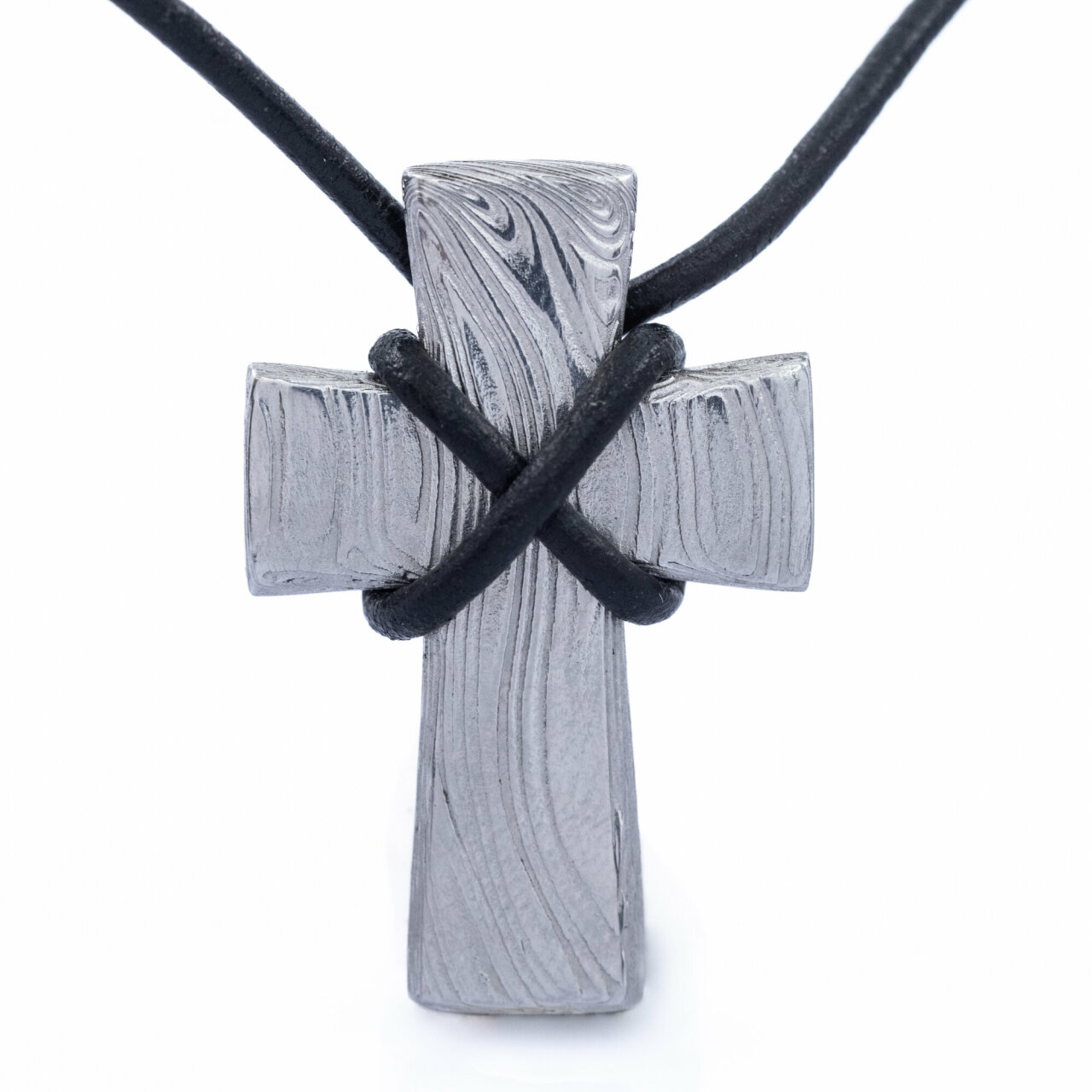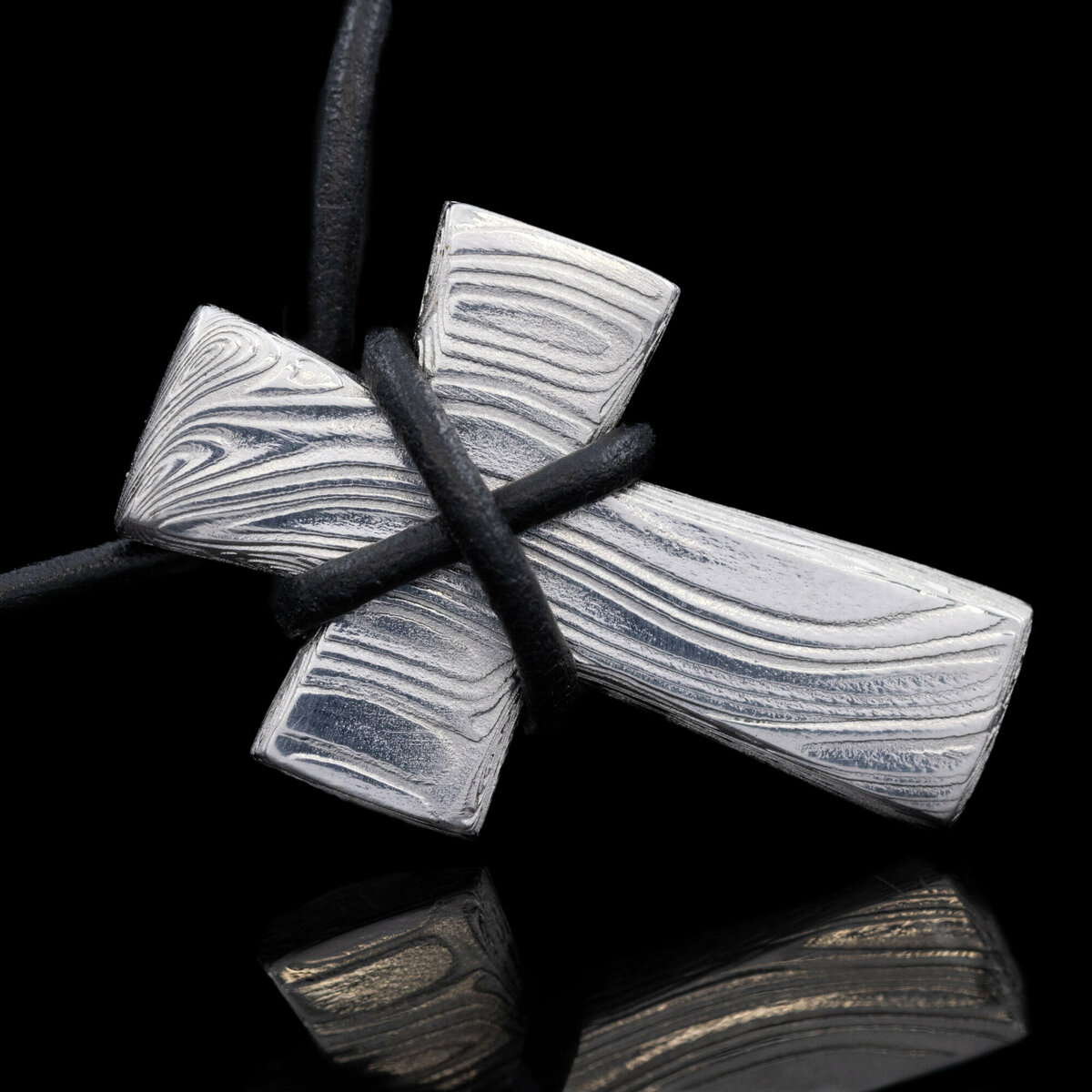 Hlavní strana > Katalog > Šperky > Přívěsky a náhrdelníky > Křížek - přívěsek na krk z damaškové oceli