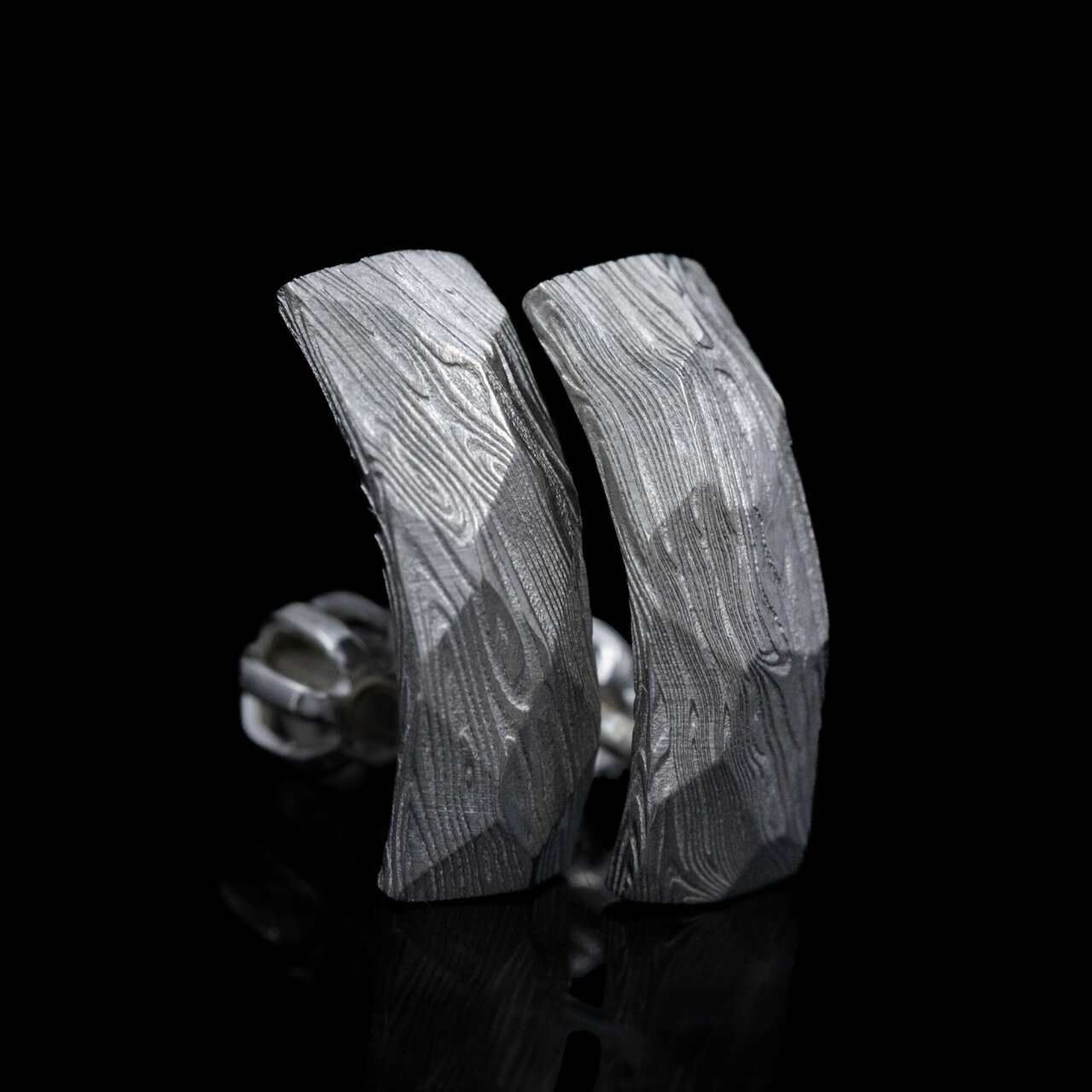 Náušnice ručně vykované z damaškové oceli, která vyniká svou krásnou kresbou připomínající tekoucí vodu.