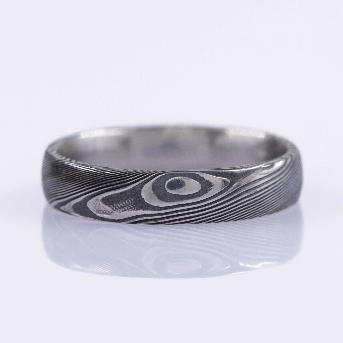 Ručně kovaný nerezový snubní prsten z vrstvené oceli damasteel - Prima.