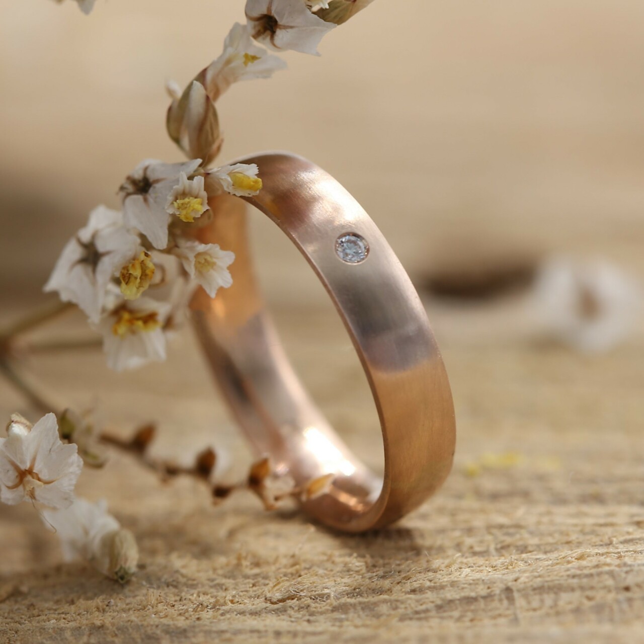 Prima gold red a diamant 1,5 mm - matný - zlatý snubní prsten