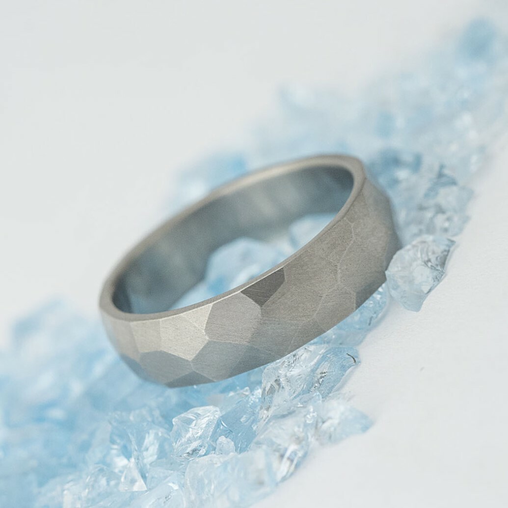 Ručně zhotovený snubní prsten z antialergického titanu, který vyniká svou lehkostí. Prsten je bezúdržbový.