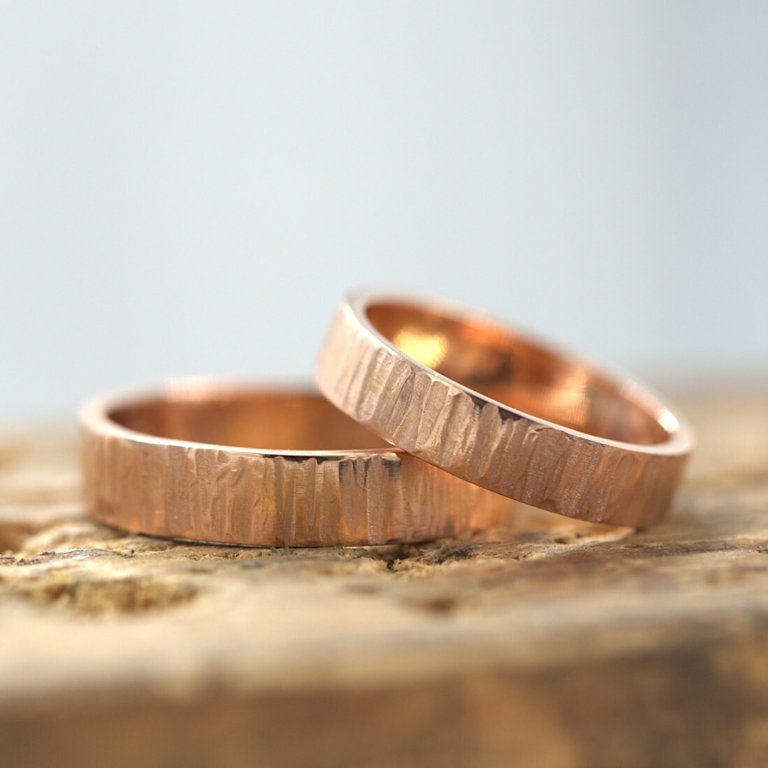 Zlaté snubní prsteny Golden wood red, vyhotoveny z ručně tepaného zlata, ryzosti 0,585 (14 karátů)